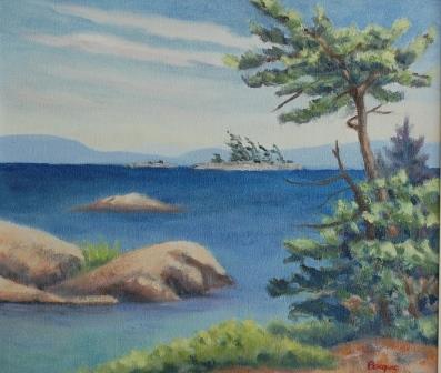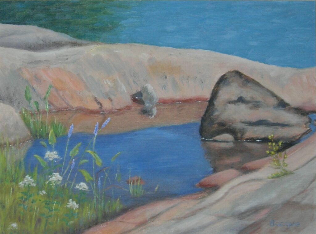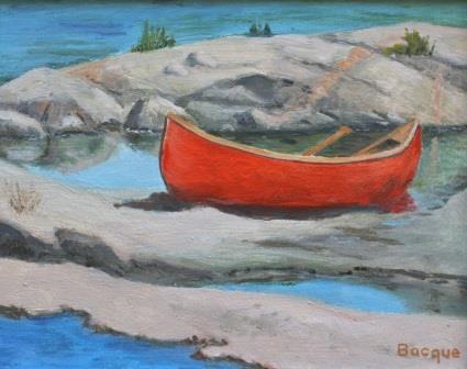 For many years we cottaged on the shore of the Georgian Bay, then moved there permanently after I retired from teaching. We exlored the islands by canoe and in our Catalina 22 foot sailboat, which gave me the opportunity to capture wonderful scenes of rocks, flowers, water, sky and pines. Here is a selection from all seasons, beginning with the red Peterborough canoe we used on our honeymoon in Algonquin Park, and which still hangs in our canoe shed. To inquire about prints from these paintings, please use the contact form.