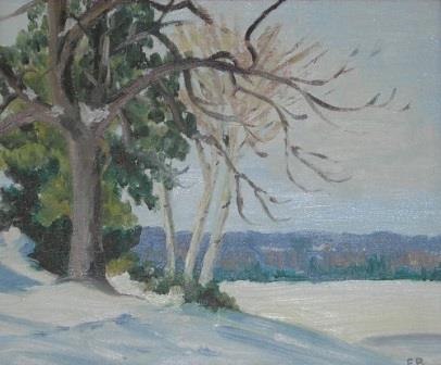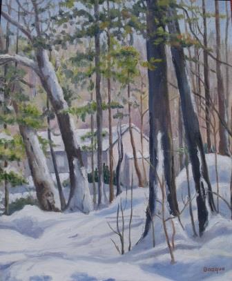 Cottage after Heavy Snow oil on board