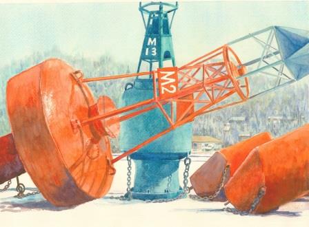 Midland buoys in winter watercolour
