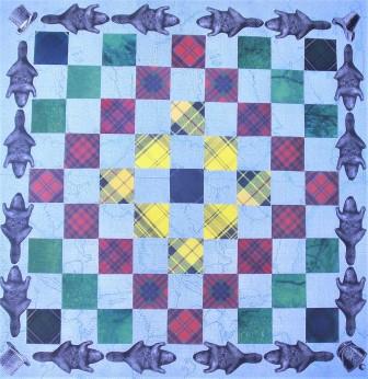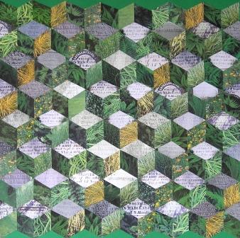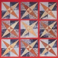 Frances Stewart settled near Peterborough in the 1820s. Her beloved daughter Bessy died as a young child soon after her arrival. Nineteenth century cemeteries are full of memorials to lost children. The tops in the quilt pattern, Baby Blocks are such grave markers, the sides, fields of grass and wildflowers.
