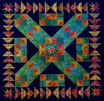 Mary Ann Shadd, a teacher, and anti-slavery activist, left her home in Wilmington, Delaware, in 1850 to help the children of refugee slaves seeking freedom across the border, by opening a school in Windsor. Later, as the first black woman publisher in North America , she brought out the newspaper, The Provincial Freeman in Toronto. The traditional quilt pattern Jacob’s Ladder or the Underground Railroad here uses Log Cabin blocks for the steps on the ladder or stations on the railroad, with a flying geese border.